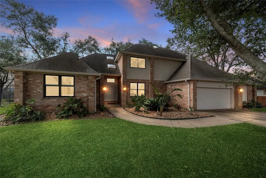 Discover this stunning custom-built home on a serene 1-acre treed lot with breathtaking lake views. Featuring a full-length dock, this home offers the perfect blend of luxury and functionality. The primary suite and an additional bedroom are conveniently located downstairs, while two more bedrooms and a study await upstairs. Inside, you'll find an office with built-in desk & shelving, an in-home gym with rubber flooring, and abundant built-in cabinetry. The gourmet kitchen boasts granite countertops, a warming drawer, and an in-cabinet wine fridge. Large picture windows flood the space with natural light, showcasing the beauty of the mature trees. Tile flooring extends through most of the home, and a walk-in attic provides extra storage. The 3rd garage bay doubles as a workshop or yard equipment storage with backyard access. Experience lakefront living with elegance and practicality in this one-of-a-kind home!