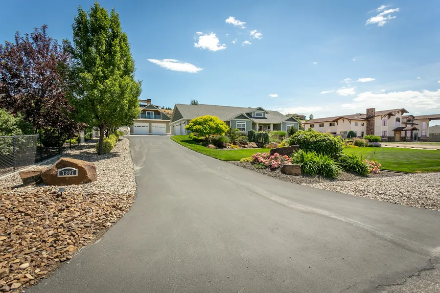 Welcome home to Sanderson Heights! You will fall in love with the serene and peaceful setting this 1 acre property offers, located in a quiet neighborhood, yet just minutes away from city amenities. This exceptional single level home offers 2584 sq ft, with 3 bedrooms, 2.5 baths, and a wonderful bonus space with bathroom above the shop. Upon entering, you will notice the amazing attention to design and detail, featuring a tiled and vaulted entry, great room with gorgeous gas fireplace, large windows, and a lovely coffered ceiling. The kitchen is designed perfectly for the chef and those who love to entertain, offering a large island with breakfast bar, granite counter-tops, 2-toned cabinetry, full tile back-splash, stainless steel appliances, and large dining area with access to the patio. Take in the views of the immaculate grounds from almost every room in this amazing home. Retreat into the spacious master suite and you will find a spa like bathroom with a large custom tiled shower, soaking tub, dual sink vanity, heated floors, and walk-in closet. Even the laundry room is impressive in this home, you will love all the storage cabinets, utility sink, and great counter space. This home was built with extra energy efficiencies, extra insulation, solar panels, and also includes whole house surround system, security system, and new exterior paint. This dream property not only offers an attached garage, but also RV parking with plug in, and a large detached heated shop, so you will find great space for all your projects and storage needs. If you love to spend your days outdoors, then surround yourself with the pristine landscaping and phenomenal views, and enjoy the water feature, hot tub, putting green, and large patio area. This stunning property truly has it all!