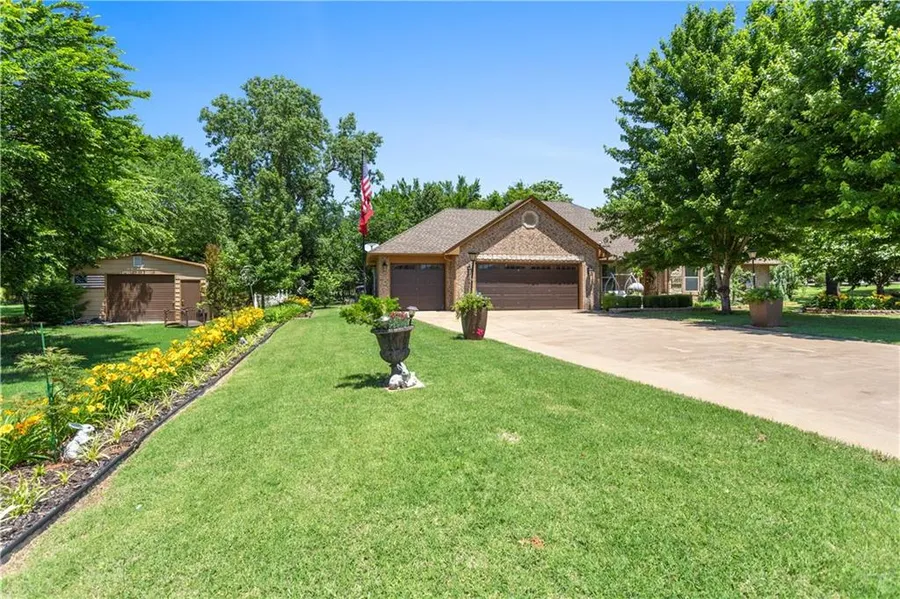 Beautiful home sitting on 1 acre. Formal dining room, living room with fireplace & built-ins, remodeled kitchen with double ovens, gas cooktop stove, pantry & eating space. Master bedroom has full bath with his/hers walk-in closets, whirlpool tub & shower. Good size guest bedrooms. The 4th bedroom could also be used as a study. Nice size laundry room. Large covered patio, great for entertaining. Gorgeous landscaped front & backyard. 3 outbuildings. One of the outbuildings is attached to a large covered carport that will hold an RV or boat. 2 storm shelters & much more! Come see this home!