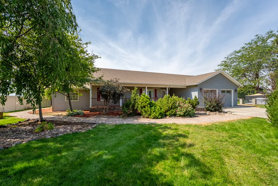 Beautiful rambler that effortlessly blends modern luxury with timeless comfort. The kitchen is the heart of the home, featuring quartz countertops, a spacious island, and stainless steel appliances. Primary suite offers a spa-like experience with a tiled shower, walk-in closet, and custom-built cabinets. Enjoy the warmth and relaxation of the sunroom, complete with heated floors and a cozy fireplace, ideal for year-round enjoyment. A unique highlight is the bonus room with a half bath and private entrance.Step outside to a beautifully landscaped front yard and paved circular driveway. Backyard is equally impressive, featuring a storage unit with a deck, perfect vantage point for breathtaking sunsets and panoramic views.