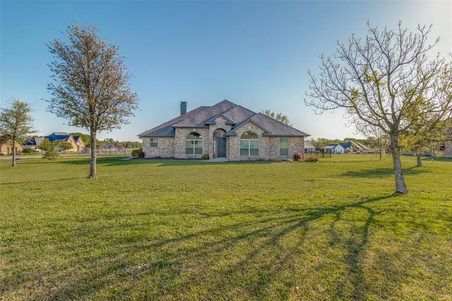 Tranquil Retreat in Gunter, TX: Hidden Lakes is a growing neighborhood amid the rolling hills and farmland of Gunter, Texas, in Southern Grayson County. Delight in the tranquility of this 3-bedroom, 2-bath with study nestled on a serene, corner one-acre lot. This home marries functionality with sophistication, boasting a freshly updated kitchen and sleek, modern baths. The hardwood floors echo the home's timeless allure. Outside, enjoy the huge backyard with some trees and the wrought-iron fencing ensconcing the property. A vast cedar-covered patio is ready for the perfect outdoor kitchen and offers a private oasis for relaxation or entertainment. Experience country in the growing Gunter, TX - this well-appointed gem awaits your visit.