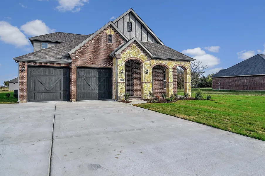 Upon entering this beautiful new custom home you will notice this is a very solid home with great design. The welcoming entryway with rich hardwood floors will take you and your guest through the front living area and into the beautiful kitchen and huge dining room. Tons of cabinets and gorgeous granite counters and stainless appliances just waiting for the festivities to begin. The open plan design then leads you to a HUGE covered patio overlooking the spacious yard.Tons of light pour through the windows and help highlight the pretty design and colors of the interior. Roomy Master suite has walk-in, double vanity, large shower and jetted garden tub. Upstairs is a large 2nd living area, game room or media room.