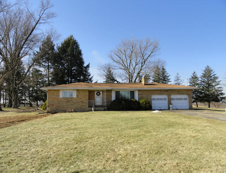 Situated on a mountaintop w/a constant breeze & gorgeous sunset views from rear deck, welcome home to this 2 BR country retreat situated on a full acre of level land. This brick ranch features a spacious LR, large eat-in fully equipped kitchen, formal DR w/convenient access to a cavernous 2-car attached garage. Bring your decorating ideas to finish the very large, open basement w/working wood-burning fireplace, also, large equipped laundry area. Enjoy a large variety of wildlife viewing from the comfort of your back yard deck.