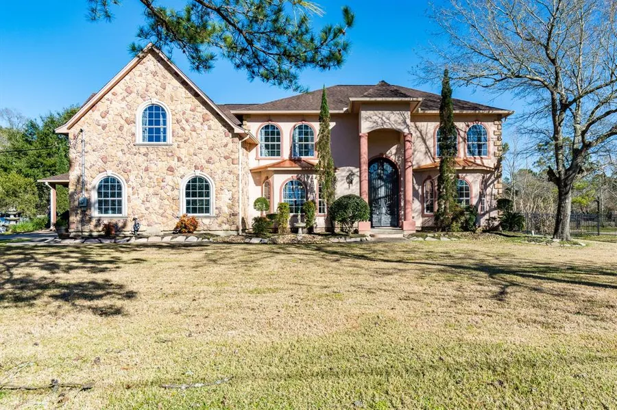 STUNNING STUCCO BEAUTY...Located on wooded acre with gorgeous pool and flagstone patio.. Custom built home with so much room for casual or formal entertaining....Crown molding and designer touches through out...You will love the formal living room, family room with fireplace and den with french doors and built ins that lead to the back patio with pool....Gourmet kitchen with granite counters, oversized granite breakfast area...Separate vegetable sink...Six burner stainless steel gas range..Stylish kitchen tile backsplash with copper inserts..Extra room downstairs for home office or hobby room..Master Bedroom/Suite with granite counters separate garden tub and seamless shower. three additional bedrooms with two full baths..You will be amazed at the 23x45 upstairs gameroom...this could easily be additional living quarters for mother in law quarters. PICTURES SAY A THOUSAND WORDS!! DON'T MISS THESE THere is an additional 4.5 acres of land that could possibly be negotiated...