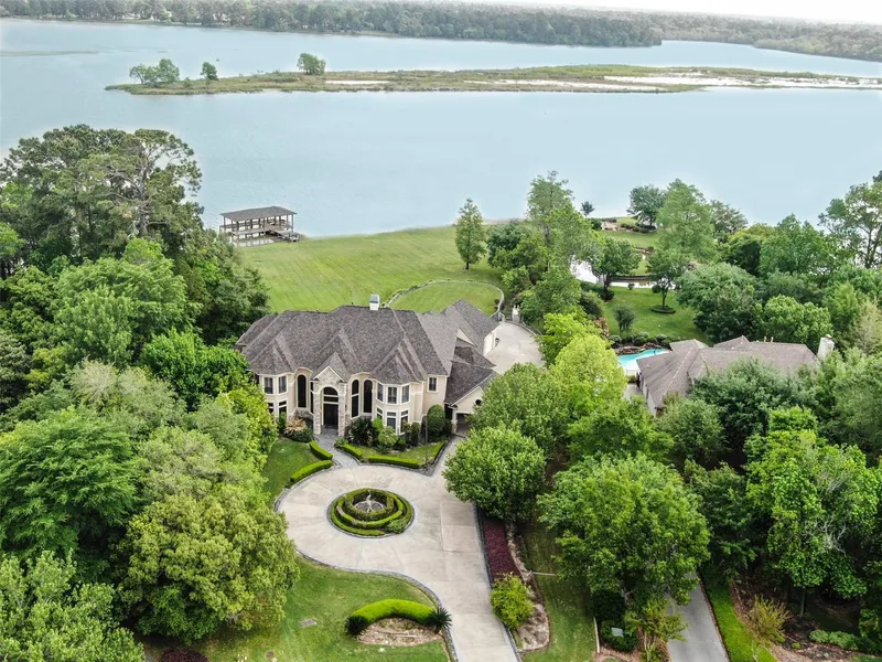 Magnificent Lake Front Custom Home built high above grade-never flooded and affords panoramic open water views! Breathtakingly beautiful home that features soaring ceilings, huge picture windows overlooking the lake, custom lighting, stunning finishes and sits on a mammoth lakefront lot over 1.5 acres of usable gated property with an estimated 300 linear feet of lakefront complete with boathouse. Made for entertaining with a full serving bar/wine grotto, downstairs movie theater and seamless open flow to indoor and outdoor gathering areas with views.The huge kitchen is the heartbeat of the home offering built in appliances, ice maker, granite counter tops, stunning Butcher Block island and a plethora of custom cabinetry.Stepping through the iron double doors your guests will be welcomed by the grand two story foyer that graciously flows into the expansive family room with a gorgeous view...