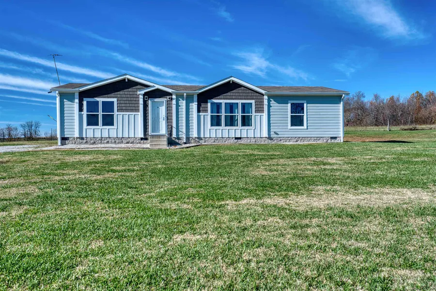 Move in ready 2021 Clayton home situated on 1.03 acre. Beautiful views of the countryside!! This home features 3 bedrooms 2 baths, with split floor plan. Kitchen, dining and living room are an open floor plan. Built-in entertainment center in living room; granite counterops and shaker cabinetry in the kitchen; barn door sliding pantry door. Utility room offers a craft area and roll out cabinet with chalkboard panel. Small bathroom features a hidden laundry basket area. Owner's suite has a large walk-in ceramic shower with garden tub and double vanity.