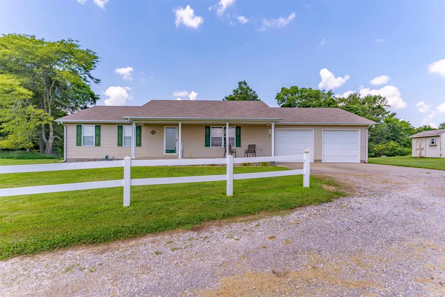 Welcome to this well-maintained, one-owner home featuring 3 bedrooms, 2 bathrooms, and a spacious 2-car garage. Nestled behind a classic white picket fence, this property offers peace, privacy, and over 21 acres of land to roam, explore, have livestock or a garden‹”all with stunning, panoramic views. Inside, you'll love the open-concept layout connecting the living room, kitchen, and dining area‹”ideal for gatherings and everyday living. The kitchen features beautiful oak cabinetry with plenty of storage and workspace. The owner's suite is complete with dual closets and a private ensuite bathroom. Whether you're enjoying a quiet evening on the porch or watching the sunrise over rolling hills, the scenic views from every angle make this property truly special. Don't miss your chance to own a slice of country paradise with room to grow and views to inspire!
