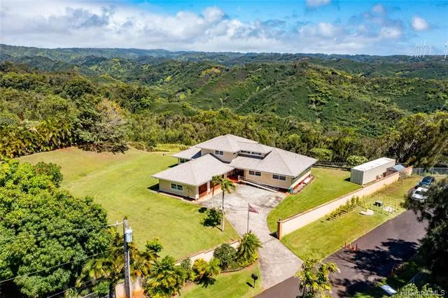 Expand your horizons in this impeccably built 4 bed/2.5 bath custom home. Rim lot situated at the end of the cul-de-sac and perched above the beautiful Waimea Valley with amazing views and cool breezes. Over 3000 square feet of living space, large 3 car garage with storage, the entire second floor a master suite, and a 964 sq. foot covered lanai set this home apart. Hard wood floors, quartz waterfall counter tops, large kitchen island, Sub-Zero refrigerator, recently installed Andersen double pane windows and sliding doors, newer roof with gutters and 45 Net-Metered photovoltaic panels located in the one acre yard ( easier to clean and maintain with no holes in the roof ) are featured on this ADA accessible property. Privacy and peaceful living await the new owner here on Pupukea.