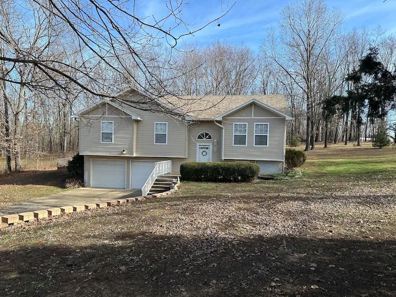 1 Acre m/l with 3 bedroom, 2 bath home - great location 2 miles outside West Plains city limits on a Private Road. This home has an open concept kitchen, dining, living room, an all season room, master bedroom with walk-in shower and walkout onto covered porch, lower level with a great space for a family room, lots of storage and 2 car garage. The yard has mature shade trees, landscaping, and chain link fenced pet area. The location is quiet, clean and no through traffic.