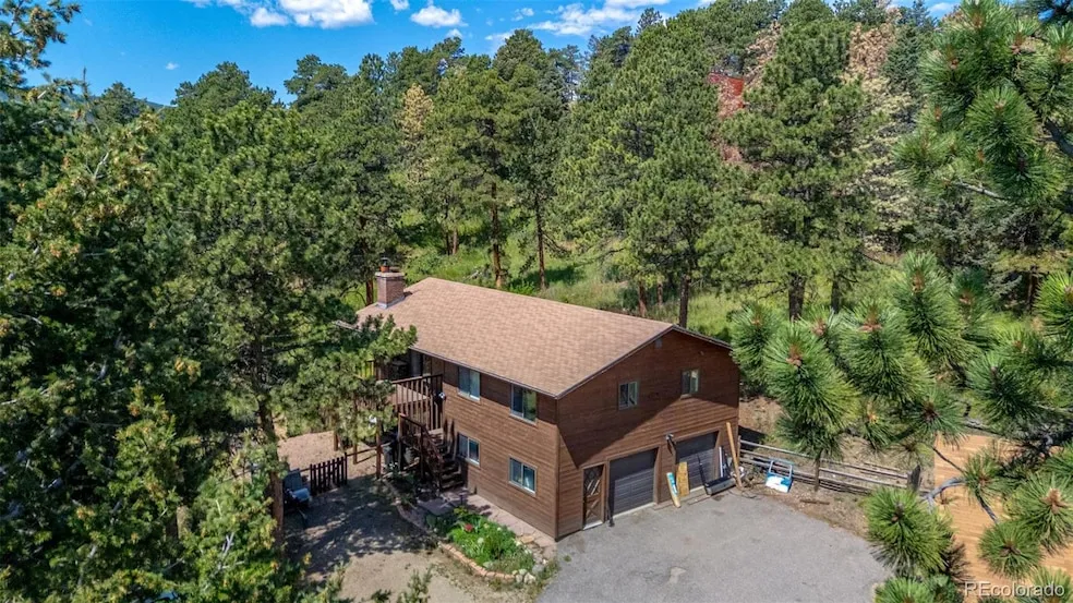 Horse READY! 1-acre lot with breathtaking mountain views! You ll be drawn in by the charm and peaceful energy of this one-of-a-kind home. Inside, warm wood floors welcome you into a cozy living room featuring a fireplace, perfect for chilly evenings. Need more space to gather? Check out the family room, where a second fireplace adds to the inviting ambiance. Whip up delicious meals in the beautifully appointed kitchen, boasting built-in appliances, granite counters, wood cabinetry, a stone backsplash, and classic tile flooring. The dining area is ideal for hosting special occasions or casual everyday meals. At the end of the day, unwind in the main bedroom offering its own closet and a spa-inspired private bathroom complete with a soaking tub and tile finishes on the floor, counters, and walls. Looking for even more versatility? The lower level features a bonus room that could easily serve as an additional bedroom, media center, game room or whatever suits your lifestyle! Outside, sip your favorite beverage on the deck as you soak in serene mountain views. Bring your horses, toys, or hobbies as the property includes a large barn with a loft area, plus a 2-car garage for all your storage needs. Whether you're seeking room to roam, space to entertain, or a quiet place to make your own home, this gem has it all. Fencing already done, all you need to do is bring your horses and move in!A peaceful combination of mountain living in the Foothills with easy access to all amenities, schools, shopping, trails, open spaces & min to 285. Don t miss this rare opportunity to own a slice of country living with all the modern comforts. Your dream lifestyle awaits!