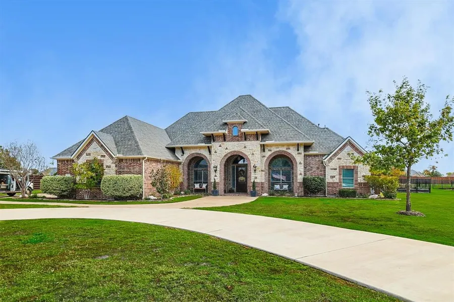 $5000 Seller Concession. This stunning single-story home will WOW you from the moment you pull into the Circular Drive. 4 sizeable bedrooms, 3 baths, and a 3-car garage. Well-appointed floor plan brings together crown mouldings and plantation shutters, and introduces an adaptable second living that could serve as an additional bedroom or media room. The cozy living room, adorned with a stone fireplace and charming wood mantle, invites warmth and relaxation. Meet all your culinary needs in the modern kitchen, showcasing granite countertops, an island, breakfast bar, and stainless appliances. Utility room includes custom cabinets, abundant storage, and a wine fridge. The office stands out with floor-to-ceiling built-ins. Primary ensuite offers impressive views and an oversized closet. The exterior unveils a paradise with a 2019 saltwater pool and spa, outdoor fireplace, extensive patios an...