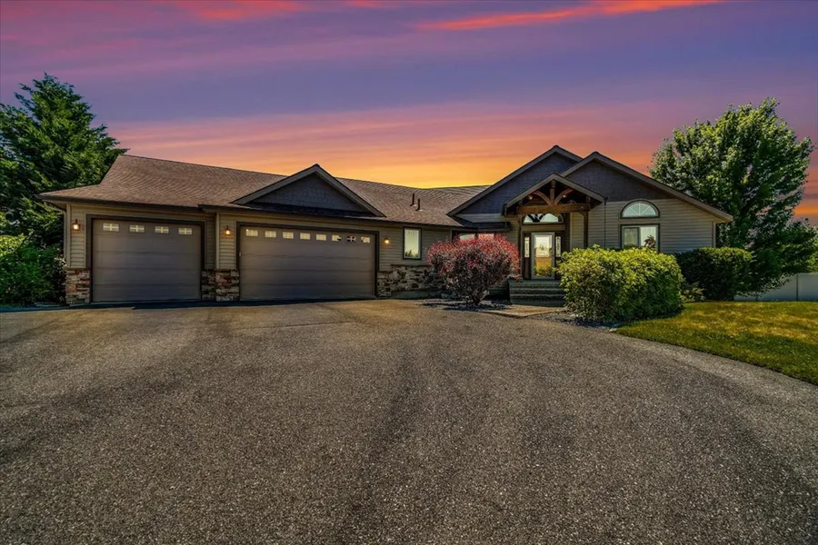 Luxury home in The Meadows, one of Post Falls' premier neighborhoods! Large one acre parcel with 3,964 sq ft of living space, a roomy 3 car garage, and a RV sized 32' x 48' insulated shop. Grand vaulted ceilings including sky lights for incredible natural light. Great room concept with brand new LVP flooring on the main level, walk in pantry, breakfast bar, natural edge granite counter tops, and Craftsman wood finishes throughout. Master & great room walkout onto shared deck with access to landscaped, fully fenced yard with mature fruit trees. Downstairs basement is a fully finished walk-out to the backyard. Tons of storage with multiple closets as well as a large storage/utility room. Two gas fireplaces, one in the master suite and one in the great room, for those cozy nights. Tile walk in shower with dual heads. Beautiful mountain views with a 5-acre park only steps away, and just minu...