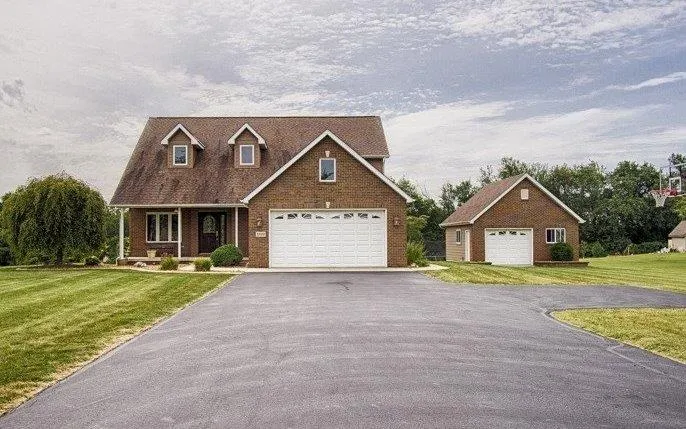 Fantastic 2 Story on one acre landscaped yard..Peaceful setting backs up to treeline. This home shows like new. Top of the line everything! All oak trim, 6 panel doors, tons of kitchen cabinets, snack bar seats 4. Main level features Living Room with Stone fireplace, Spacious Formal DR open to Kitchen and Living Room. Family Room just steps from the kitchen. main level laundry/mud room entry from garage. Upstairs you'll find 4 Bedrooms. Master Bedroom has it's own private Bath with Jacuzzi tub, double sinks and shower. NICE!! This home features a WALK OUT basement & patio -- lovely landscaped yard..Its a MUST SEE! (Hot Tub can stay)Bsmt has Poured 9' walls and could be finished for more living space if desired. There is also a detached garage with loft --This home is delightful and a must see!!! Bring your fussiest Buyer's ~~~ You'll be glad you did! Deck off kitchen is maintenance free! Home has blown in insulation &cemplank siding to keep those utility bills low.
