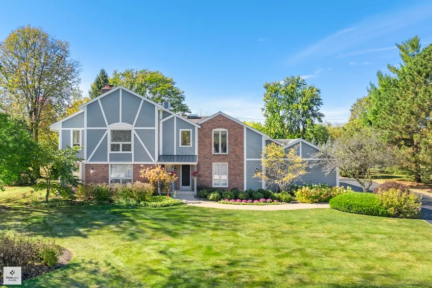 Introducing this one-of-a-kind dream home, nestled on a beautiful 1-acre lot and packed with luxurious features making this a true custom Oasis! The heart of the home is a gourmet kitchen equipped with top of the line stainless steel appliances, a Wolf stove, Bosch dishwasher, Bosch double oven, quartz countertops, a built-in quartz eating table with custom cabinetry with soft close drawers, a walk in pantry, skylights that are motion-sensored to close automatically when it rains. From the kitchen step outside through the elegant double doors to your personal oasis-an L-shaped inground pool with a diving board, a huge brick paver patio, a hot tub, and a pergola that houses a custom-built double-sided bar with granite countertops, a fridge, and a beverage cooler. They've thought of everything ...Also enjoy the convenience of an outdoor shower for post-swim or gardening cleanup. Pool area is surrounded with a maintenance free aluminum fence leaving you an ample backyard unfenced. Plus a shed to keep all your outdoor needs. Step back Inside, relax by the 3-way fireplace that can be enjoyed from the living room, family room, or the inviting 4-season sunroom. Relax in in front of the fire in your cozy family room with wet bar. Step up to your elegant living room that you can combine with your family room or keep separate. Both rooms lead to a true 4 season sunroom with a passive solar system. The living room and family room have beautiful hardwood floors throughout. Also featured on the first floor is a separate dining room off the kitchen with beautiful hardwood floors, a large mud/laundry room with plenty of storage room. Head upstairs and you'll find a spacious primary suite with vaulted ceiling, hardwood floors, a cozy fireplace, bonus room, and a remodeled ensuite bath with a stand-alone Le Bain bathtub with self-cleaning jets, a ceramic tile shower with multiple shower heads, and a large walk-in closet. Enjoy three additional bedrooms, with newer carpet (installed in 2023) two with walk-in closets, fans in all bedrooms. Wait there's more the basement features a great room, a workshop, and plenty of storage space. Additional highlights include, Hardy Board siding, a 3-car garage, solid interior doors, updated trim. Pool updates include a new liner and pump (2024), as well as a new filter and heater (2022). Located in the highly sought-after Adlai E. Stevenson High School district, close to great shopping & restaurants too! This exceptional property has everything you need for luxury living! Truly a dream home! What a place to raise your family.