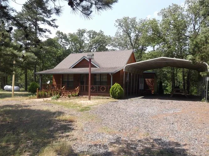 This is a super clean wood siding cabin with 3 bedrooms 2 baths, large living area, sunroom and huge deck overlooking the Kiamichi River. The cabin has electric, rural water and septic. Comes move in ready with new or like new furnature and appliances.