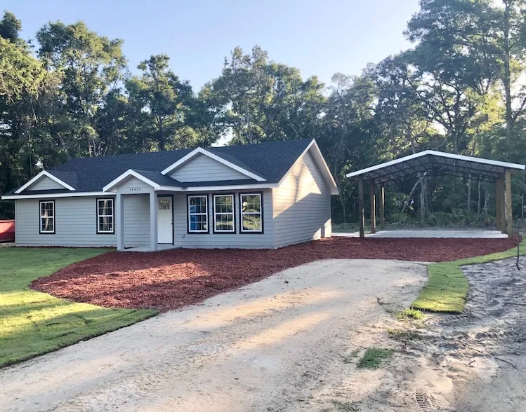 New construction in Oak Meadows Subdivision between Chiefland and Fanning Springs Fl. 3 bedrooms 2 Baths on a wooded 1 acre lot. Nice big 24ft x 24ft detached carport. Across the road from subdivision entrance is the greenway trail with miles of biking, jogging or walking trails. Note Real Estate broker owns this property.
