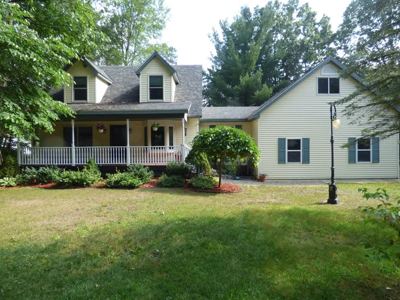 Custom built Cape Cod home with one owner situated on 1 acre wooded parcel. Inside shows pride of ownership and has impressive kitchen with beautiful maple cabinets, snack bar and dining area with door wall out to huge deck which is prepped for a hot tub. Great room with gas fireplace, crown molding and bay window. Main floor master bedroom with walk in closet and private bathroom. Vinyl Andersen windows throughout. The roof is 3 years old and furnace was installed in 2015. Newer whole house generator stays. Massive 4 car attached garage with car hoist, over sized doors, epoxy flooring, partially heated, workshop and huge bonus room above would be perfect hobby room. Full unfinished basement also offers additional storage or potential for more living space. Relax on the generous sized front porch and enjoy. Immediate occupancy.