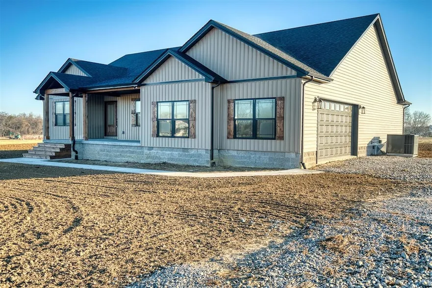 Welcome to this stunning brand-new construction, offering 2,400 sq ft of thoughtfully designed living space on a spacious 1-acre lot. With 4 bedrooms, 2.5 bathrooms, and an open floor plan, this home blends timeless charm with modern convenience in every detail. Step inside to an inviting layout featuring luxury vinyl plank flooring throughout, creating a warm and cohesive flow. The kitchen serves as the true heart of the home, complete with stainless steel appliances, beautiful cabinetry, granite countertops, and plenty of room for cooking, gathering, and everyday living. The primary suite provides a peaceful retreat, featuring a spa-inspired ensuite with a walk-in shower and elegant finishes. Three additional bedrooms offer comfort and flexibility perfect for family, guests, or a home office. Enjoy the quiet beauty of the countryside from the covered front and back porches, ideal for slow mornings, evening conversations, and year-round relaxation. A 2-car garage adds convenience, storage, and functionality to this exceptional home.