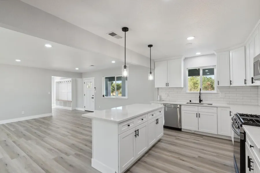 Welcome to HOME! This beautifully renovated 5-bedroom, 4-bathroom home sits on a serene one-acre lot surrounded by almond orchards, offering 2,680 sq. ft. of upgraded living space. Every detail has been thoughtfully enhanced, from the 30-year Landmark roof and new 200-amp electrical panel to energy-efficient lighting, SPC vinyl flooring, and a modern 5-ton HVAC system. The home features a new PVC main line, PEX water lines, and a Navien high-efficiency water heater. Enjoy cooking in a kitchen equipped with Samsung stainless steel appliances. With strong phone and internet reception, this home is ideal for remote work or simply staying connected. Plus, its just 5-8 minutes from the highway! Ready to make this dream home yours.