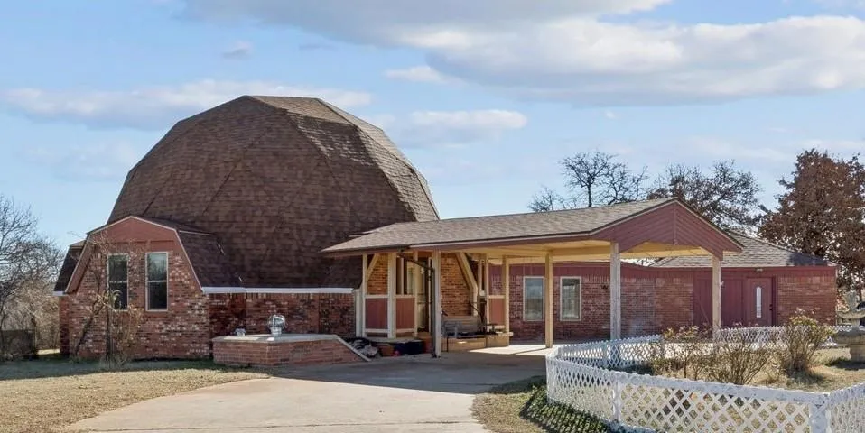 Looking for something a little more unique? Then you must see this geodesic home in Newcastle in person! The main home features 3 bedrooms, 2 baths, and 2 living areas. The primary bedroom & bath are downstairs. The 2 guest bedrooms and additional full bath are upstairs in the loft area. The kitchen provides ample granite countertops, gas range, dishwasher, trash compactor, and custom oak cabinetry with an abundance of cabinets and drawers. Previous owners converted the garage into a studio apartment with its own entry, kitchenette, laundry hook-ups, bathroom, and bedroom/living area - perfect for a guest suite, extra income, or home office/studio. Outside is the inground storm shelter, a fenced area for kids and pets, and a storage room attached to the back of the studio apartment. The Sellers said you will be able to enjoy the views of those incredible Oklahoma sunsets from your front porch! Improvements since ownership include - most of the windows in the main home replaced in 2021, roof replaced in 2021, & foundation work completed in 2026. Situated on a one acre corner lot in the quiet Quail Run community of Newcastle. Close to I-44 and Hwy 37 providing easy access to OKC and the surrounding areas.