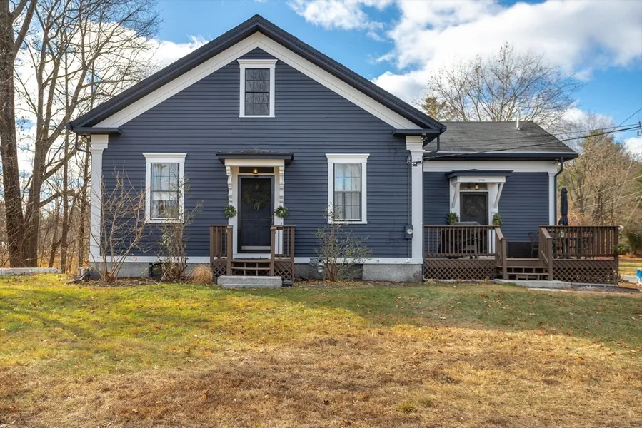 The old West Schoolhouse offering a comfortable country setting and a piece of history is for sale. Oversized trim, windows and doors, granite stone foundation, corbels and a stone fireplace make this home distinctly special.The generous front deck is the perfect spot to sit and relax, grill dinner or just welcome you home. Step inside to the cook's eat in kitchen with gas stove, stone counters, 10 foot ceiling, and plenty of space to show off your cooking skills. Chic grey cabinetry with blue island & plenty of storage. Head into the gracious family room with wide pine floors,shiplap wall, stone fireplace with wood stove insert & french doors leading into your private office. 3 bedrooms/2 new full baths plus a wide hallway flanked with custom built in pantry/storage space. A delightful home offering one floor living, loads of natural light and plenty of green space outside. Did I mention charm and character? Commuter rail, Routes 2, 495 ,2A, and 119 close by. OH SAT-SUN 1030-NOON