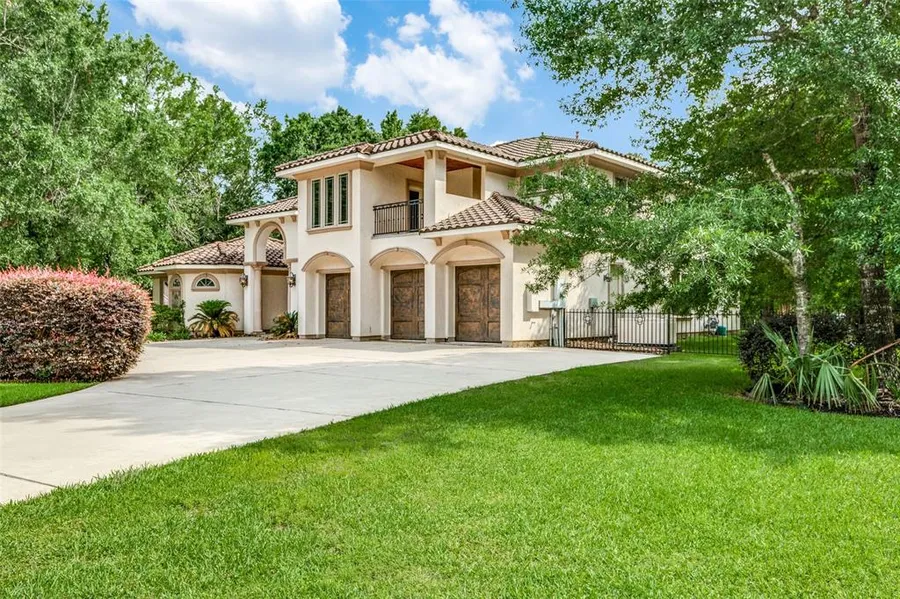 Stunning custom Mediterranean-style home on a nearly an acre lot, perched at the corner of a cul-de-sac street with no back neighbors and the added privacy of a wooded vacant lot next door! Only 4 homes are on this quiet cul-de-sac. Architectural style and detail, with numerous custom details abound throughout the home! A huge back yard with outdoor kitchen offers a palette to create the outdoor living area of your dreams! Full 3-car garage, whole-house generator, central vacuum, and more. FRESH NEUTRAL PAINT AND NEW LIGHT CARPET HAVE JUST BEEN COMPLETED!