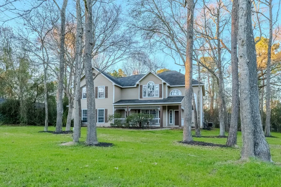 WELCOME HOME to a perfect mix of country charm and convenience. This beautiful home sits on a tranquil wooded one-acre lot centrally located in the gated community of Thousand Oaks. An inviting front porch welcomes you to your new home! Downstairs boasts a spacious family room, dining room, kitchen with stainless steel appliances, a breakfast area and the primary bedroom & en-suite. Upstairs is a game room and four generously sized bedrooms. The peaceful backyard is an entertainers dream with a custom bar, covered porch, large wood deck, gazebo spa and beautiful views of the mature trees and greenery. Enjoy all that Thousand Oaks has to offer with two ski lakes, fishing ponds, community pool, tennis & bocce courts, basketball court, playground and private roads for golf cart rides. Plus, the neighborhood parades and events are a blast! Conveniently, within two miles you have highly rated...