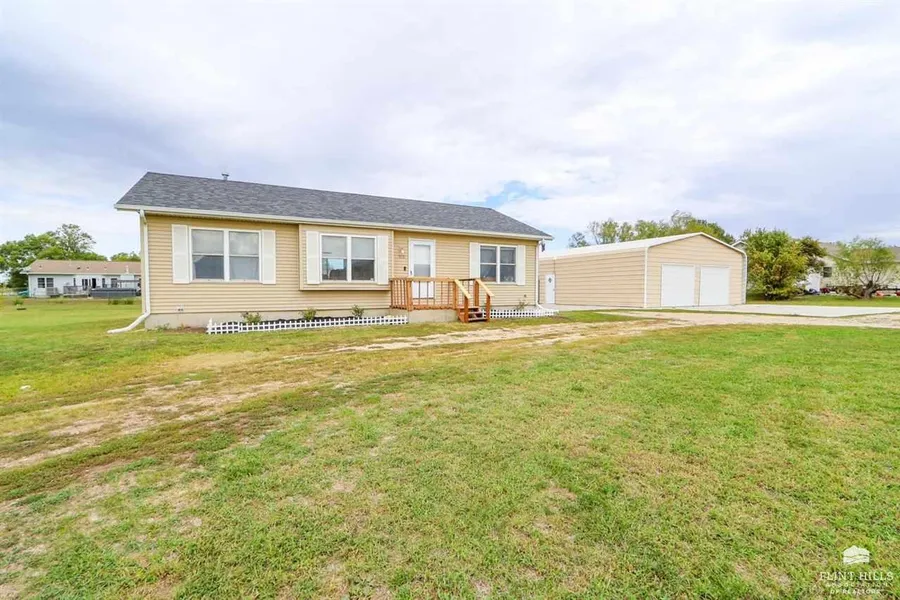 Well maintained home in rural community in White City, Ks. This 3 BR, 2 BA home offers newer kitchen appliances, newer carpet w/ upgraded padding in bedrooms, updated bathrooms, newer roof, newer garage doors and openers on the (41 x 30) 4 car garage. Driveway and patio poured in Nov 2020. Large wood deck (pergola and partial covering added summer 2020. Front deck added Oct 2023 .One red maple, one red oak, two apple trees and several Leyland cypress added in Spring of 2020. Park and baseball field is just down the street for summers activities. Huge basement with room to grow for additional bath, bedroom and family room.