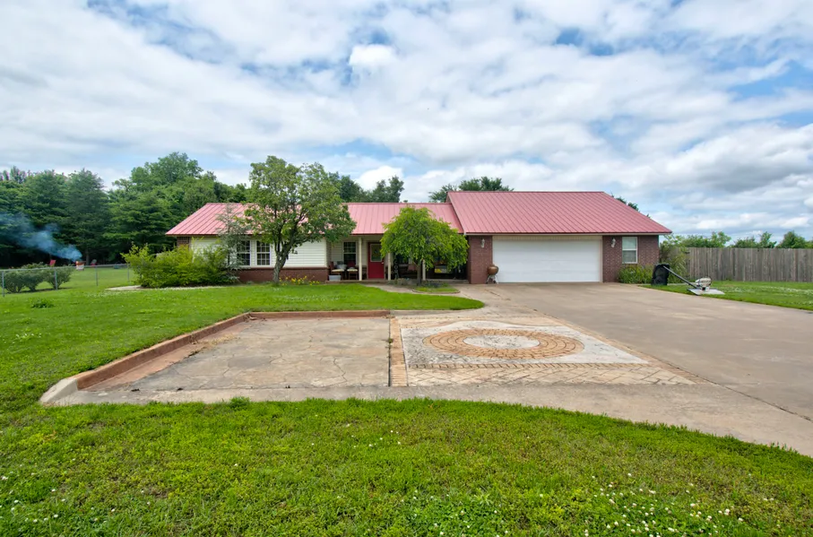 Welcome to this beautifully maintained 3-bedroom, 2-bathroom brick home, perfectly situated on a spacious 1-acre lot. This home features an inviting open floor plan with a large kitchen island, walk-in pantry, and stained concrete floors throughout. Enjoy the comfort and convenience of a generously sized, updated laundry room, and relax or entertain on the expansive back patio with of potential for entertaining. The property has a durable metal roof, large garage, and a well-kept exterior. Don’t miss out on this gem with plenty of space both inside and out!
