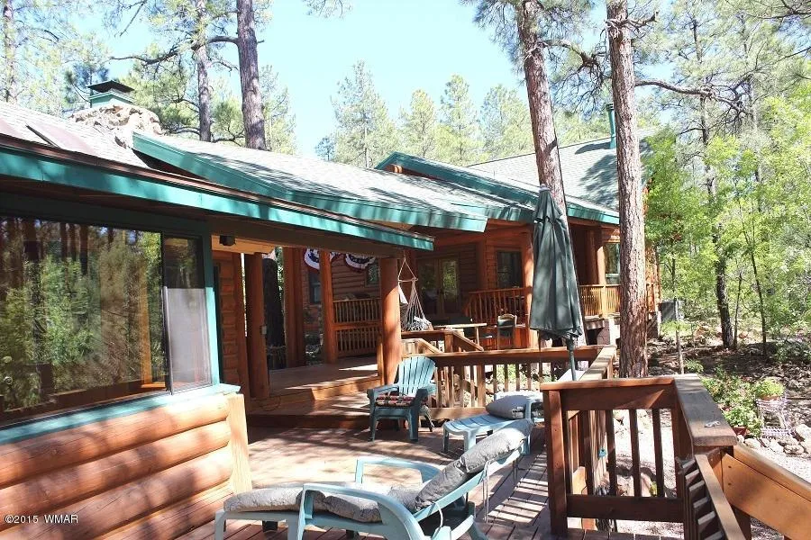 White Mountain Summer Homes incredible mountain cabin sitting on 1.15 acres with guest quarters. Great home for two families or large extended family. Great outdoor entertaining space with covered & uncovered decks. Outdoor propane fireplace.Beautiful private views from every window. Great room with vaulted ceilings, upgraded kitchen with island, wood fireplace with gas starter. Aspen/ knotty pine wood interior throughout. Clubhouse and rec center available with membership visit www.wmsha.org for details. WMSH