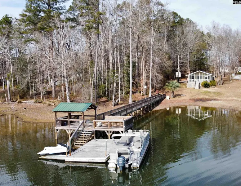 Welcome to this beautiful waterfront home on Lake Murray with no HOA. Enjoy exposed wooden beam ceilings throughout the newly remodeled kitchen, and large stone wood burning fireplace in the family room. Three bedrooms and two baths with lake views from your screened-in porch, back deck or dock on over one acre of lake land. Long lighted walkway leading to dock has two sections - one for entertaining and a covered one that includes a fish cleaning station, electrical hook up, sink and shower. Both sections lead to the attached floating dock for your boat, pontoon or jet skis with water deep enough that you don't have to store or remove your boat from the dock when the lake is lowered. Owner willing to sell pontoon boat and trailer.