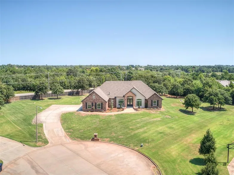Beautiful 3,291 sq. ft. brick-and-stone home on 1.09 acres in a quiet SE OKC cul-de-sac. Located in Carl Albert High School district and just minutes from Tinker AFB and Downtown OKC. Features 3 beds, 2.5 baths, open living with fireplace, chef s kitchen with quartz island & double ovens, and two front flex rooms with French doors. Luxurious primary suite with spa bath, walk-in shower, soaking tub & custom closet. Covered patio overlooks a spacious backyard, perfect for entertaining or future pool/shop. *Home also offers accessible design features including wider doorways, spacious rooms, and an open layout for ease of movement.