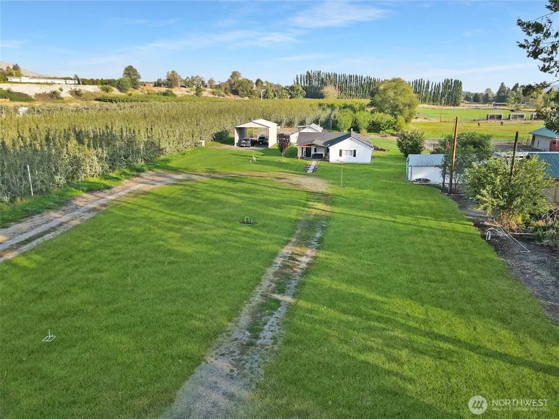 Welcome to this timeless, updated farmhouse offering 3 bedrooms-1.75 baths on a lush, irrigated acre—perfectly blending farmhouse charm with modern convenience. 5 minutes to town. A covered patio entry welcomes you inside to discover newer stainless-steel appliances, butcher block counters, a private bath off the primary suite and tiled bathrooms, that elevate everyday living. The 1196 sq ft layout is efficient & equipped with laundry area & second bathroom off bedrooms. Outside, enjoy an oversized yard with a sprinkler system, two versatile outbuildings, a large carport & plenty of space to roam, garden, or entertain. This property is a rare find with room to grow, play, & relax in a peaceful country setting.