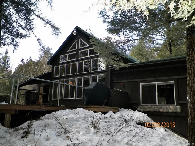 Just what you have been looking for! Year round waterfront home with Cathedral ceilings on the Black River, near the snowmobile trail, Very private setting,on Boonville Power, (40x24) 4 stall 3 story garage/barn. Tiered decks with hot tub and fire pit, swimming hole out in front of the house. Master bedroom has full bath with tub and shower, laundry hook ups and large walk in closet. Great room windows overlook the decks and river, a small stream runs along your deck with mini waterfalls. Garage has two over head doors and parking for 4 cars, full stairs to second story which also has a loft. finish this space to meet your needs. 1.24 acres means you also have a nice sized yard, surrounded by pines.