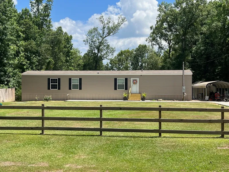 Grab your pole, and lets go fishing! This beautifully maintained one acre property comes complete with a fully stocked pond. The 2018 custom designed manufactured home is absolutely adorable. This move-in ready home boasts three bedrooms and two baths. Open-concept living room and cute kitchen with island and dining area. Pretty wood-look flooring throughout. Sit back and relax on the covered back porch and admire the pond with fountain. There is plenty of parking on the long concrete driveway and space for your toys under the carport or in the storage building. If you are searching for life in the country, call today to see this awesome home!