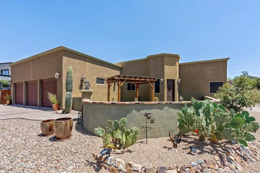 Discover uncompromising craftsmanship and sophisticated design in this remarkable 4BR/3BA masterpiece. Set against the stunning backdrop of the Santa Catalina Mountains, this 2,243 sq ft sanctuary showcases dramatic barrel vault ceilings, premium finishes, and a brilliant floor plan that seamlessly blends indoor elegance with the natural beauty of its expansive desert setting. The home's thoughtful layout provides separate living spaces throughout, with a floor plan designed for versatility and functionality. Architectural highlights include dramatic barrel vault ceilings, multi-layered tray ceilings, and expansive windows that fill the interior with natural light. Premium tile flooring features throughout the entire residence with absolutely no carpet ideal for desert living and