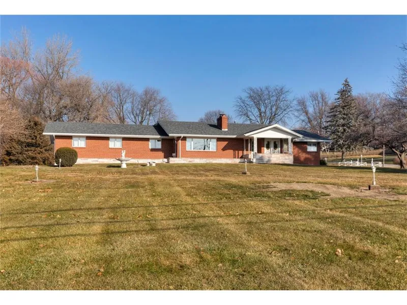 This beautiful ranch sits on just over one acre and overlooks the Des Moines skyline. The custom built brick home has an open concept with over 2000 square feet. The living room features an impressive 12 foot polished and natural gray marble fireplace. A great open concept with spacious kitchen featuring tons of cabinet space, cherry wood cabinets, and an 8 foot bar with sink and bottle chillers. You will love the hardwood floors throughout the home! The master bedroom includes sliders to patio and adjoins to the powder room and full bathroom. There are three other nice sized bedrooms as well as an additional bathroom. The two car over sized garage includes a heater, workbench, and built-in storage and new garage openers. You will be in love with the large lot, mature trees and beautiful views! Other updates and improvements include roof, radon mitigation system, and many other updates!