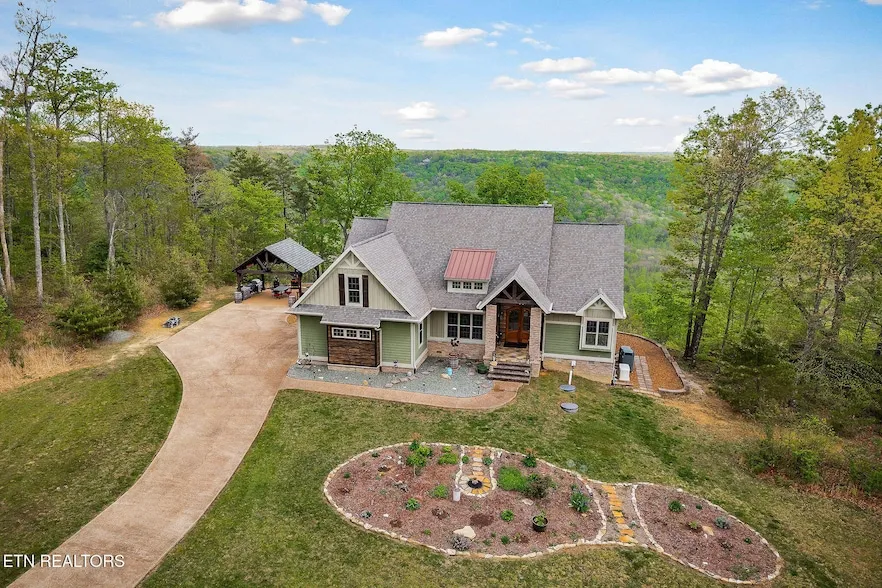 Lifetime million dollar views in this gated community in the mountains of TN. The coveted community of The Bluffs offer unreal picturesque mountain top views. 750 acres of land surrounding the development is a protected conservation. Full of wild life and epic sunrises and sunsets. This craftsman style home is one owner and one of kind. Upgrades throughout the 4 bedroom 4 bath home. Sprawling valuted ceilings with real wood trim and ceilings. Tongue and grove hardwood flooring and tiled baths. Kitchen comes with all stainless appliances refrigerator, dishwasher double over , gas cook top, under cabinet lighting, granite counters, center island with sink. Bonus room and office space. Attached 2 car garage. Partial Basement is encapsulated and has a moisture regulator system insuring the Tennessee humidity is never a problem. Neighborhood ammenties include sewer , fiber optic internet, natural gas , and 2 park areas. NO HOA!!! A gated community with NO HOA! 10 miles to Interstate 40, 20 miles to Cookeville!