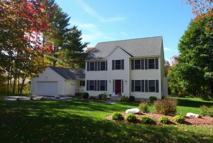 Spacious, Open Concept Colonial with lots of natural light! Home features a Maple Kitchen with Stainless Appliances, Granite Breakfast Bar Open to Dining area with Sliders to Deck, Also open to the Family Room with Gas Fireplace & Mantle, 1st Level Living Room or Office, Open Foyer with Cathedral Ceilings & Double Sidelight Windows, Hardwood entry spreading into the Formal Dining Room featuring Crown Molding & Shadow Boxing, Side Entry Porch into Tiled Mudroom into 1st Flr Laundry Room, 2nd Level features the Landing overlooking Entryway, Master Bedroom with Cathedral Ceiling, Walk-in Closet & 3/4 Bath, 2 additional bedrooms, full bath, Central Air, Deck, Stamped Patio, Oversized 24x30 Two Car Garage With Shelving, pretty country setting...Close to Exit great for commuting and in a convenient Country location.
