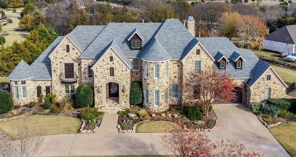 A luxury custom home on 1 acre in Cobblestone Farms. Over $150K remodel to Texas-sized master suite with spa-like bath with freestanding tub and gourmet kitchen with island, gas range, double ovens and quartz counters. Features hand scraped hardwood floors, 25 SEER HVAC with UV filters, new carpet and paint throughout, all LED lighting, water filtration system. Stone fireplace, limestone accent wall and a soaring ceiling. First floor media room, and a 2nd bedroom with ensuite bath. Upstairs includes Game room and living area, two bedrooms connected by a Jack & Jill bath. A backyard oasis includes a pool, spa, grill and sport court overlooks the pond. All media equipment to convey.