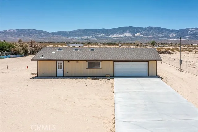 This one could be your desert oasis! Sitting on a 1-acre fenced lot is very close to popular off-roading areas. A hidden gem built in 2020, this thoughtfully designed home features one big bedroom and a bonus room that could be another bedroom or office. The modern kitchen has stainless steel appliances and quite a bit of storage and counter space. The 2-car finished garage has TWO garage doors, making it a pass-through for easy vehicle access to the backyard. Also, the property stays with a Tankless hot water heater and a 40ft storage container. Escape the hustle and bustle of city life and immerse yourself in the tranquility and serenity of the desert living in this wonderful home. See it today!