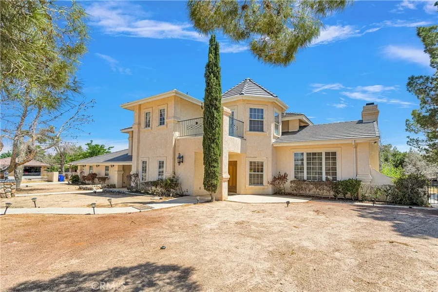Step into this exquisite MEDITERRANEAN luxury CUSTOM home, located in the prestigious and serene neighborhood of Apple Valley. Nestled in the heart of a GOLF COURSE community, this residence boasts 3669 square feet of living space on an expansive 1 ACRE LOT. With FOUR spacious BEDROOMS and FOUR BATHROOMS, including one with a direct backyard access. The interior features are truly remarkable, with HIGH CEILINGS that create an open and airy atmosphere throughout the house. The main level seamlessly flows into an open concept design, with the family room seamlessly connecting to the living room and offering direct access to the backyard, a true entertainer's dream. The kitchen is a chef's delight, showcases GRANITE COUNTERS, an abundance of sleek cabinets and a SPACIOUS PANTRY. This luxurious home offers a world of opulence as you surround yourself with the warmth of TWO stunning FIREPLACES, elegantly designed with wooden bookshelves. From the colossal balconies, you can take in the breathtaking views of the golf course. The main bedroom boasts a luxurious jetted tub and a separate shower for ultimate relaxation. Multiple balconies throughout the house offer ample opportunities to savor the beauty of the surroundings. Get ready to be captivated by the enchanting Mediterranean-style exterior. Entertain guests with ease in the backyard oasis, which features a BUILT-IN-in BBQ, with plenty of space to build a custom swimming pool and spa. The covered patio offers the perfect spots to relax and unwind, while the spacious backyard provides plenty of room for parties and gatherings. The lush yard, adorned with an abundance of trees, creates a serene and private sanctuary. With a 2-car garage and a circular driveway this property provides ample parking space for your convenience. This home offers ample space for RV's, boats and all your outdoor adventure gear. Additionally there is a shed in the backyard. Conveniently situated minutes away from shopping centers, restaurants and entertainment. TOP RATED Apple Valley Schools.