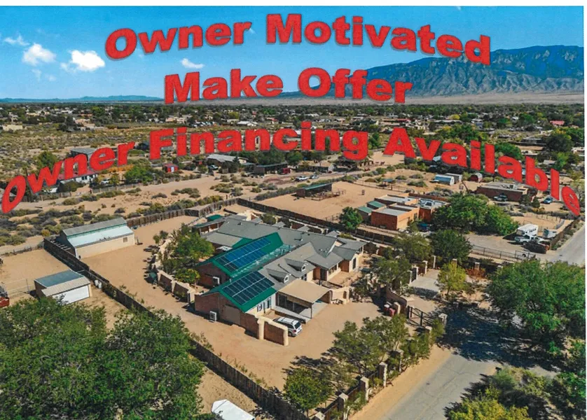 A treasure in lovely Corrales awaits those wanting a truly unique estate. This self-contained solar powered compound is secured w/ gate,hurricane shutters, back-up batteries, video surveillance & surrounded by a stucco wall. A lovely porch wraps around the home. Walk into over 6800 sq ft of expansive living area- from a huge hobby-flex room, lovely kitchen w/extensive island, electric cook top, built in oven, spacious dining area, family room, and charming nook warmed by wood burning stove. The distinctive design allows for primary bedroom choices, w/spacious walk-in closets & flexible storage areas. Heated & cooled work areas, huge pantries plus a RV storage w/ full hook-ups & more storage!Charming garden areas along side of home w/brick patio.Unparalleled design and distinct living.