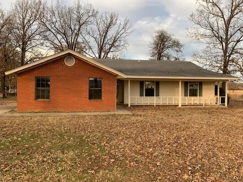 3 bedroom 2 bath brick home with a large living room, covered porch, deck, sitting on 1 acre.