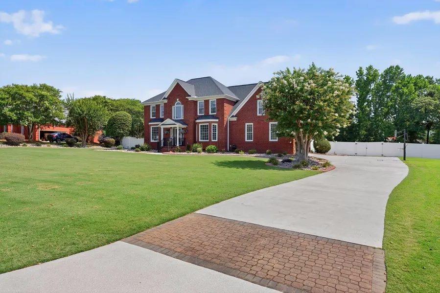 This gorgeous brick home sits proudly on a level, one-acre lot in one of the Upstate's most sought-after neighborhoods. With pristine landscaping and undeniable curb appeal, it's the kind of place that instantly feels like home. The living room is cozy and open, with a gas fireplace and built-in shelves. The kitchen is perfect for cooking and hanging out, with granite countertops, stainless appliances, and a breakfast nook that looks out over the backyard. You also get a formal dining room and front living room for more space to spread out. Upstairs, the primary bedroom feels like a retreat, with a fancy ceiling, big bathroom, walk-in closet, a clawfoot tub, and tiled shower. Three more bedrooms and the laundry are upstairs too, including a flex room with its own staircase, great for guests, an office, or a playroom. But the real star? The backyard. It's huge and fenced-in, with a Trex deck, and a pretty pergola with lights, a perfect place to relax, play, or throw a party. You even have room to add a pool if you want! Or just walk to the neighborhood pool, tennis courts, and clubhouse.