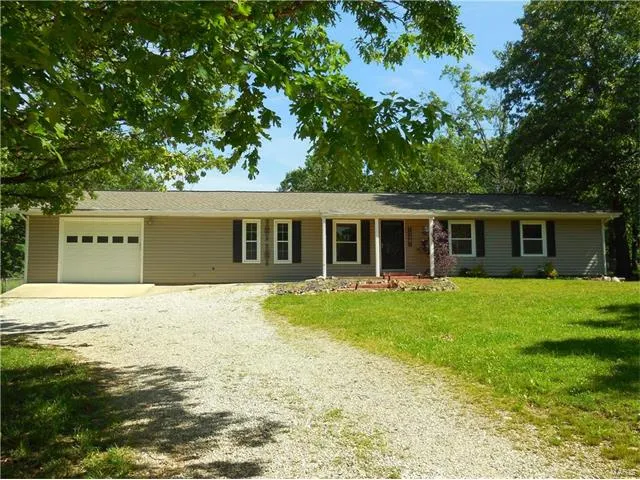As you enter this adorable ranch home, you will notice the slate tile entryway and living room with hard wood floors, plus the custom tiled gas fireplace. Move on to the contemporary kitchen with maple cabinetry, industrial look backsplash, breakfast bar, awesome lighting and sleek black appliances. This home offers you two options for a master bedroom. One master provides a full bath (with shower) and the other offers a larger space with hard wood and a 1/2 bath attached. Don't need 4 bedrooms?? Use one as a family room or work out space! The covered back deck provides shade for those summer BBQ's while the kids and dogs play in the flat, fenced yard. There are TWO outbuildings, one is wired for electricity. Don't let the 1 car garage fool you, it is quite spacious measuring in at 25x18 and it even has a storage/hobby room in the back. Parking is a breeze on the circle driveway. Located less than 5 minutes from the South Gate of Ft. Leonard Wood!