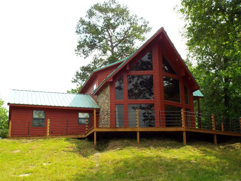 Lake Livingston Retreat on 1-acre peninsula! This 3 bedroom, 2 bath home is located on the north end of Lake Livingston-close to Trinity, TX. The home sits on the higher end of the property with breath taking views of the lake. Open concept living, dining, and kitchen with high ceilings. Tastefully decorated & custom details throughout, 2 bedrooms are located downstairs with the master suite upstairs. The master bedroom has an en suite bathroom with a large walk-in shower. Sitting room/media room/loft sits off the master bedroom upstairs. Utility room downstairs is spacious. Large deck off the lakeside for enjoying friends and family. The property is partially cleared and a haven for outdoor enthusiasts. Wildlife abounds. The tract feels secluded with the benefit of being located in a neighborhood. Glen Haven Estates has a community park with boat launch, fishing pier, and picnic area.