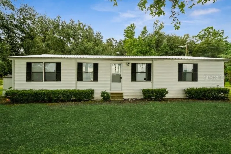 This 3-bedroom 2-bath mobile home is located in Union County near the Alachua County line and CR 18. The property is located on a dirt road and it's fenced all around the mostly cleared 1 acre lot with a gated entrance. The property features beautiful shade oak trees throughout and a fire pit. There's a metal roof shed on the property that was converted into a chicken coop. Recently renovated kitchen cabinets and vinyl floors in the kitchen, living room, and dining room. The rooms have carpet. Appliances include: refrigerator, stove with oven, washer, and dryer.