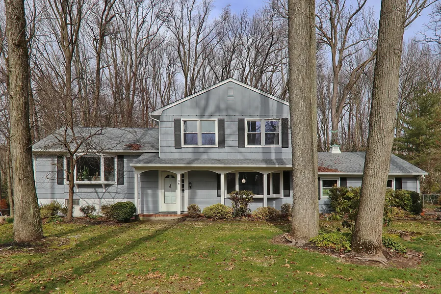 Split-level home on a large, secluded property on a quiet road. Large outside patio with in-ground swimming pool - perfect for entertaining! Stone fire pit with seating. Private, partly wooded backyard. Mid-century modern design interior. Hardwood floors. Central air. Bedroom on ground floor. High ceilings in living room and dining room with an open, airy feeling. Large additional room on ground floor can be used as a family room or office. Eat-in kitchen. Large bedrooms. Two car garage.
