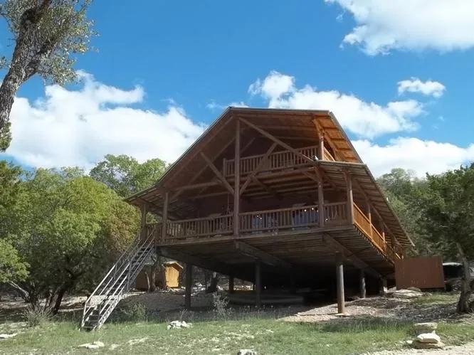 Enjoy Mile-long views from the extensive covered porches and balcony. Rustic pine beams and a large lofted 2nd floor add to the charm of this cabin in the hills! 2 full bedrooms and the large loft can accommodate 10 people!! One full bath and one half-bath upstairs that could easily be converted into a full bath. Private water well on the premise adds to the amenities.